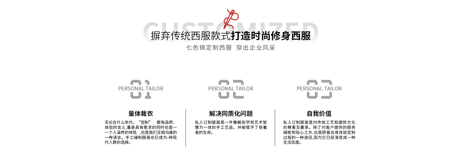 - 安徽七色錦服飾有限公司成立于2011年07月19日,公司位于安徽省合肥市包河工業(yè)區(qū)延安路17號,廠房面積約5000平方米,投資資金1000萬元。作為一家集服裝設計,生產(chǎn),服務于一體的中、檔次高的西裝、襯衫企業(yè),服務專業(yè)、顧客滿意”的經(jīng)營宗旨、以“客戶為先、市場導向”為經(jīng)營理念更好的服務于廣大消費者、依靠高超的技術,先進的設備,嚴格的管理,穩(wěn)定的產(chǎn)品質(zhì)量,精細的制作工藝,周到的客戶服務贏取了廣消費者的信賴和好評.各類服裝服飾專業(yè)技術人員100多人,各類先進的生產(chǎn)設備150多臺,具有設計、制造各類服裝服飾的能力。公司是以從事中、檔次高的西服、襯衫、西褲、西裙、大衣、領帶、皮鞋等設計、生產(chǎn)、銷售一體化為主,為證券、單位、團體、酒店、學校等企事業(yè)單位定制專業(yè)的服飾公司并通過了ISO19001:2015質(zhì)量體系認證、ISO14001:2015環(huán)境體系認證、OHSAS18001:2007職業(yè)健康安全管理體系等認證...